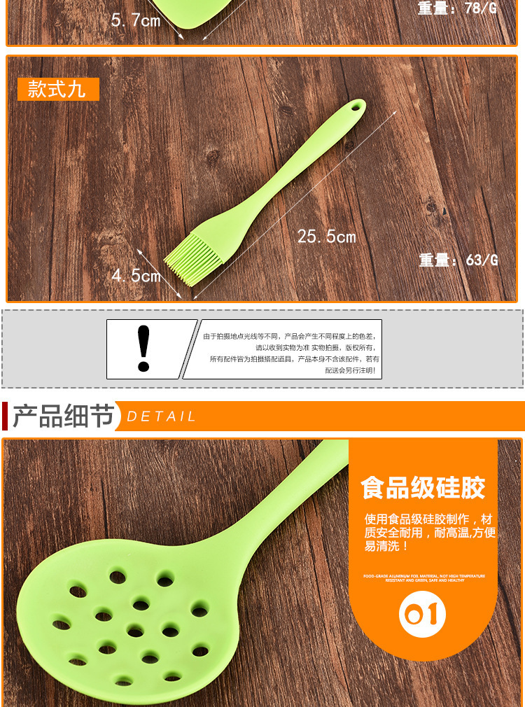 - 名称:硅胶厨具9件套,硅胶厨具九件套,硅胶全包一体式厨具