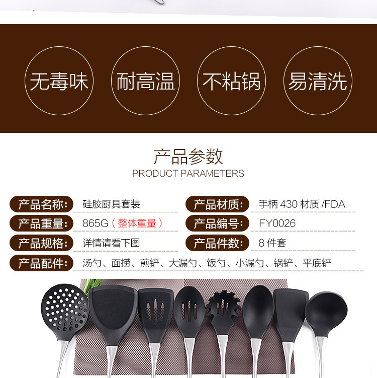 - 不锈钢硅胶厨具套装,不锈钢硅胶厨具8件套,不锈钢硅胶厨具八件套