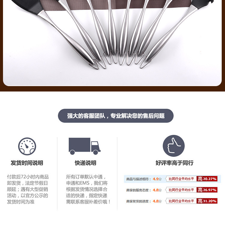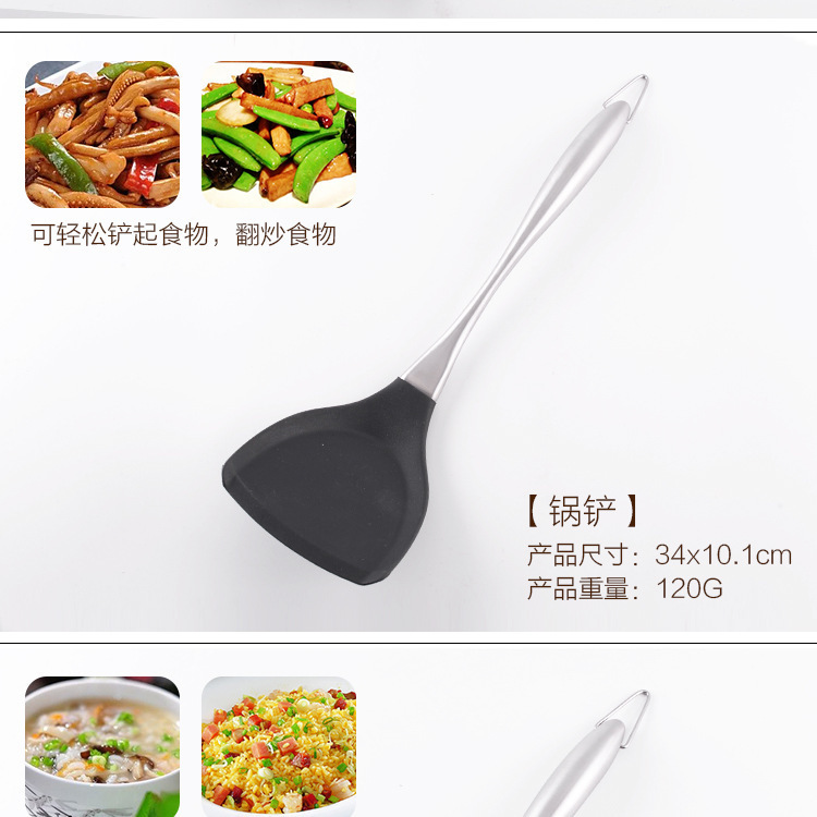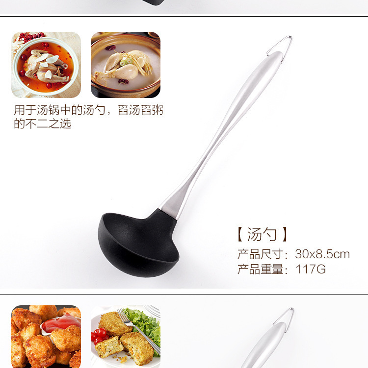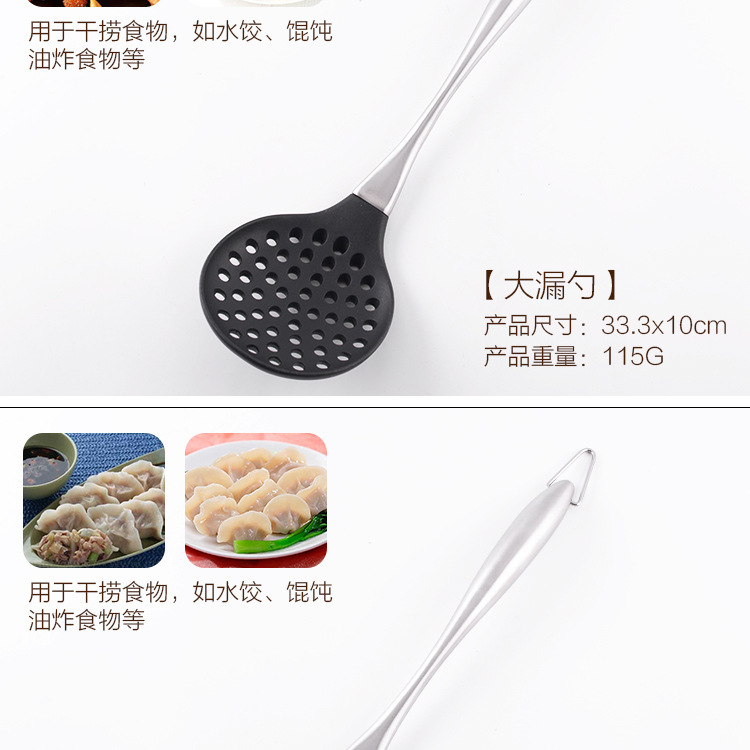 套装明细:捞篱、汤勺、意粉勺、漏铲、刮刀、勺子、面包夹打蛋器