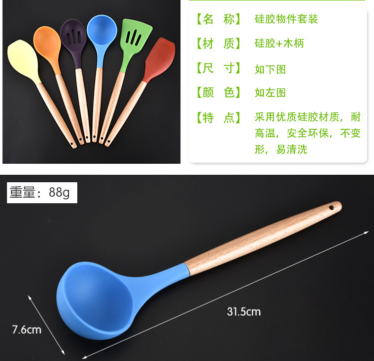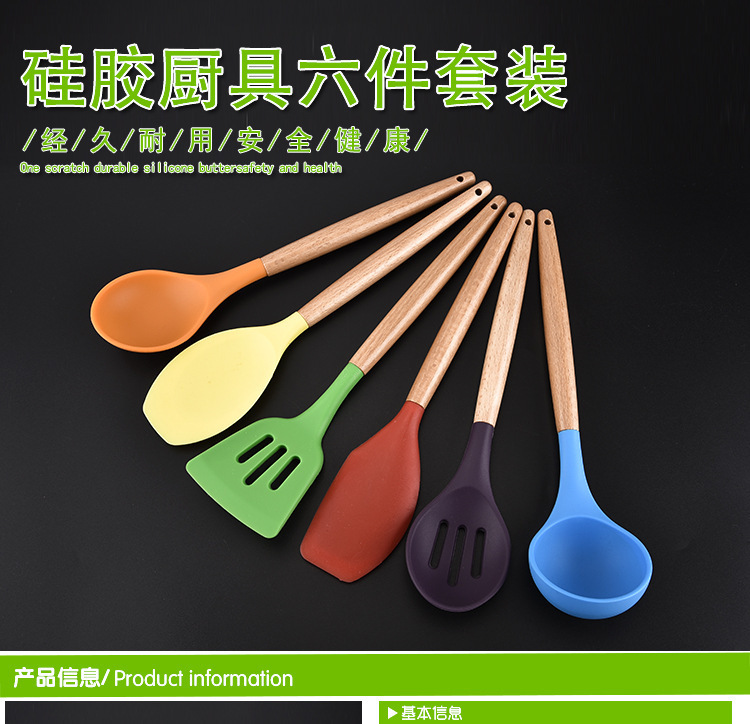 彩色硅胶厨具套装6件套,彩色硅胶厨具套装六件套