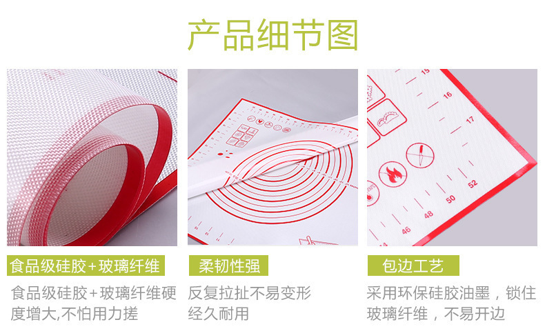• 硅胶玻璃纤维揉面垫,硅胶带刻度揉面垫,硅胶烘焙垫