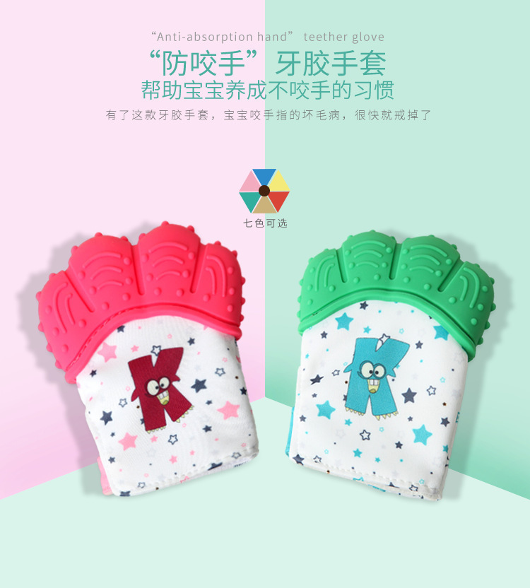 硅胶牙胶手套,硅胶磨牙棒手套,防吃手硅胶手套