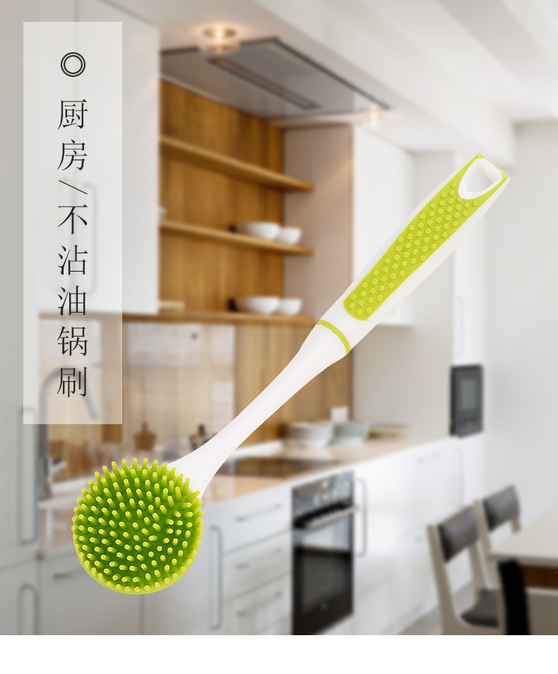 硅胶长柄清洁刷,硅胶不沾油长柄刷子,硅胶厨房洗碗刷