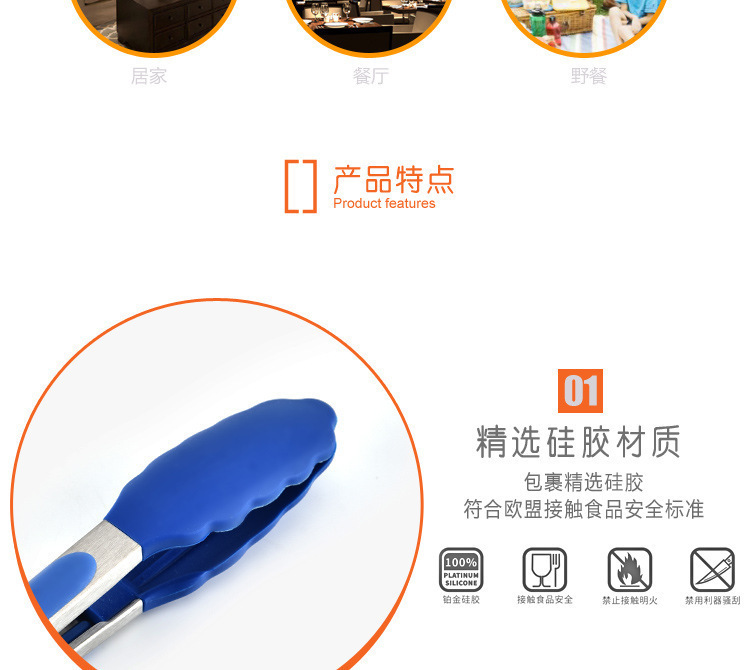 - 硅胶食物夹,硅胶不锈钢烧烤夹,硅胶不锈钢自助餐夹