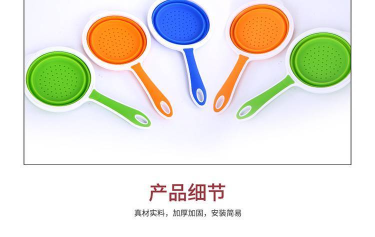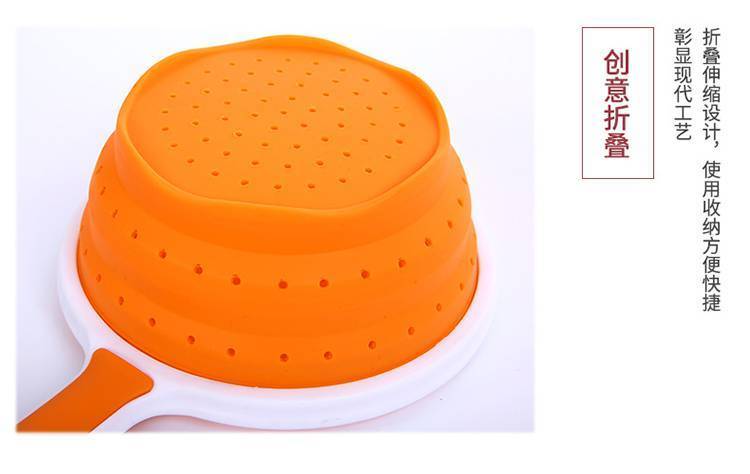 • 创意将折叠漏勺,创意硅胶漏勺,食品级硅胶沥水篮,伸缩硅胶漏勺