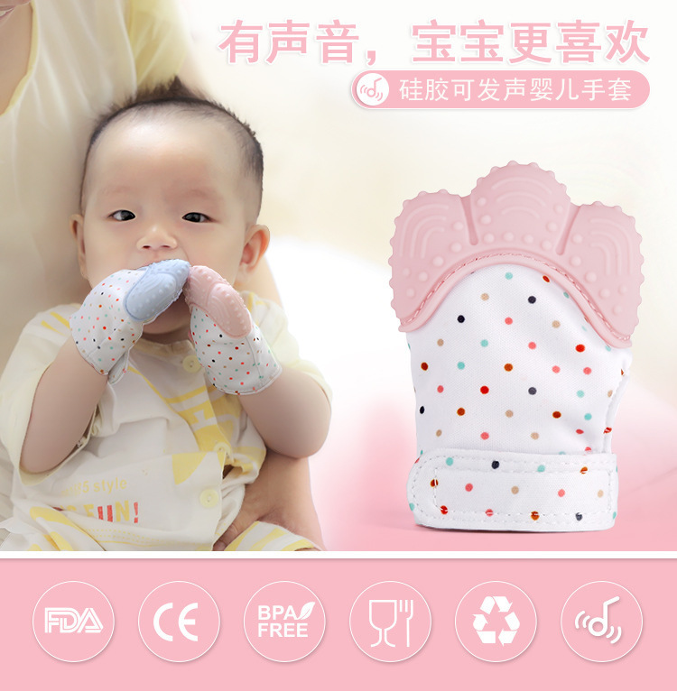 为什么宝宝挨咬手指,因为宝宝在长牙期间会牙龈发痒,牙齿疼痛等,宝宝靠着吸允,咬等口腔活动,缓解不适感,硅胶婴儿手套轻松解决宝宝出牙烦恼,出牙期宝宝牙龈发痒,看到什么东西都想咬,手套牙胶通过按摩牙床,缓解宝宝出牙期间的各种不适,安心度过长牙期。